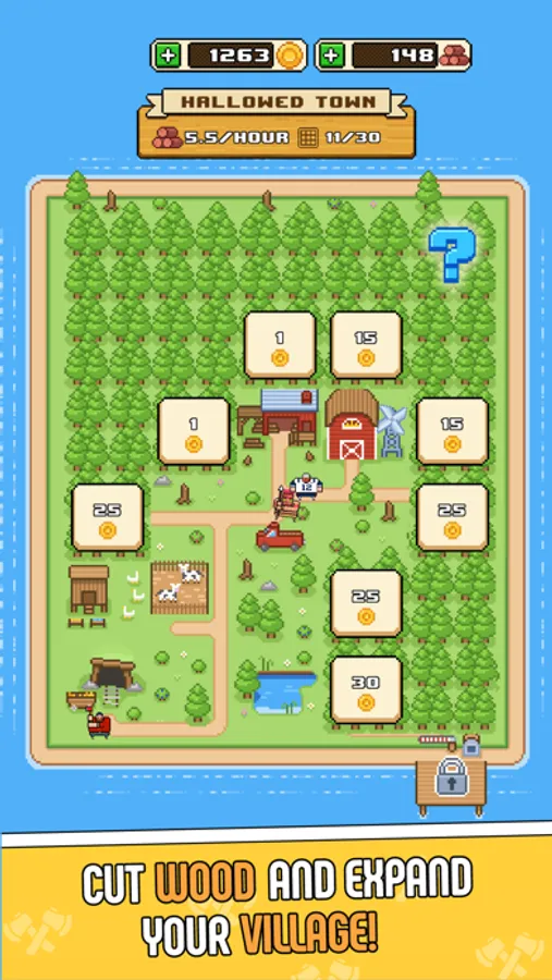 Cut down trees, trade wood for gold, buy plots of land and discover new islands.