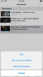 * Full management of downloaded files: Rename, Delete, Play, Upload to Dropbox