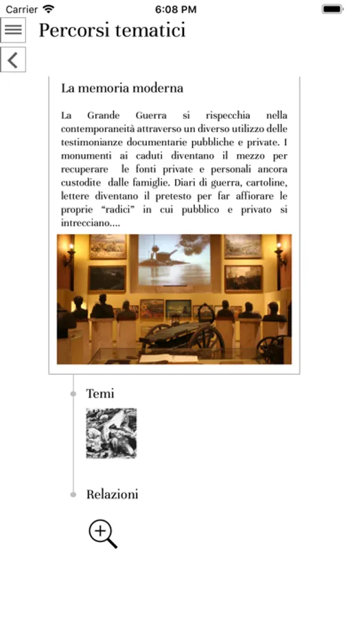 Questa app vuole proporre un percorso visivo attraverso le testimonianze della Grande Guerra.