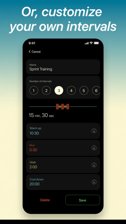 Don't want to look at the screen every few minutes? You can have the app tell you updates on your progress in set distance and/or time intervals.