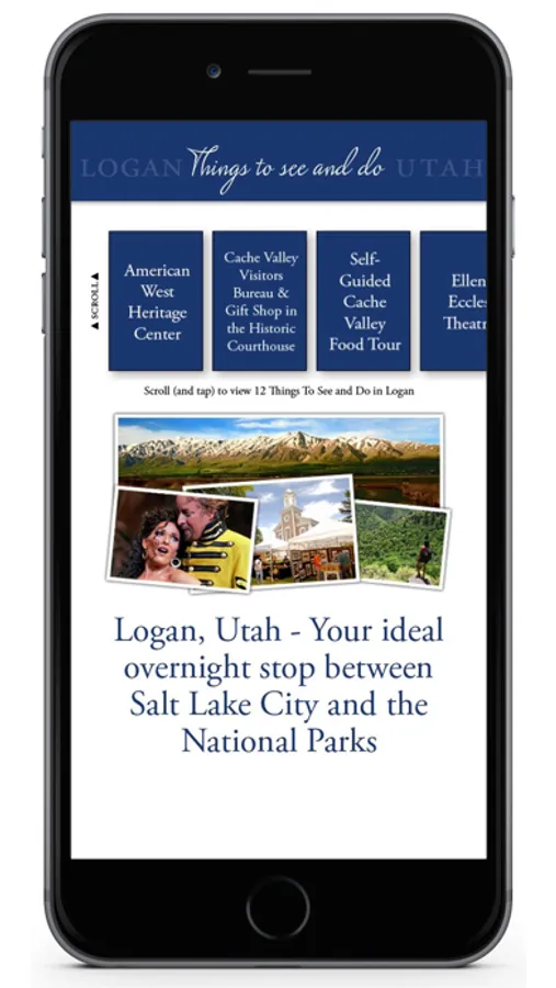 When you’re in Logan, use the app to view 12 popular things to see and do. Scroll through the list and tap on any site or activity to see an image and read a description to learn more. The list also appears in portrait or vertical rotation as well.