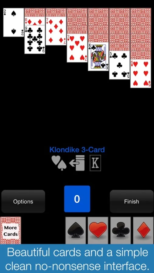 Beautiful, highly detailed card faces take full advantage of Retina displays and the no-nonsense interface keeps the focus where it belongs, on the game play.