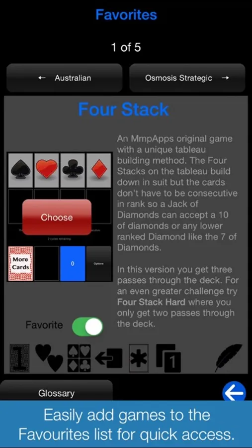 Detailed rules for every game and a glossary of solitaire terms to help you quickly learn to play new games.