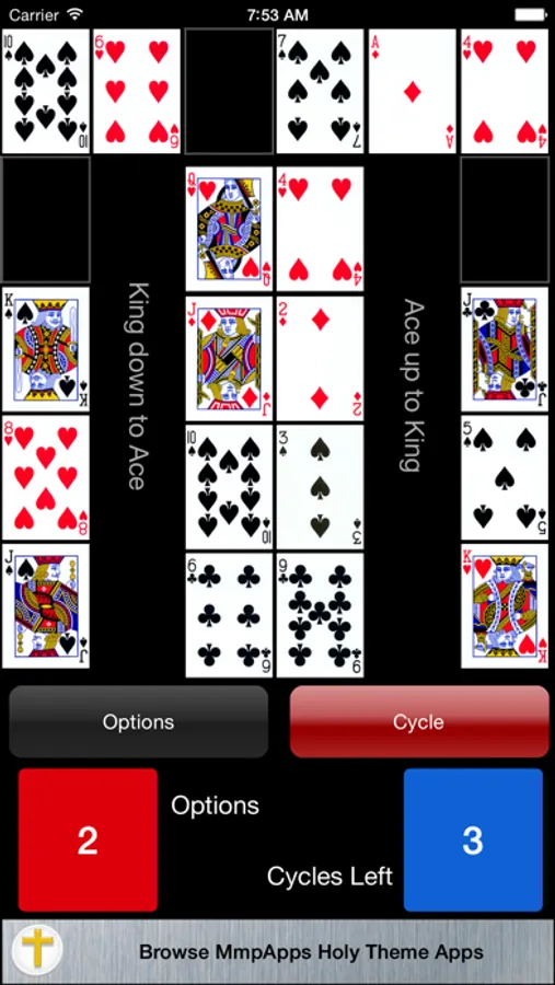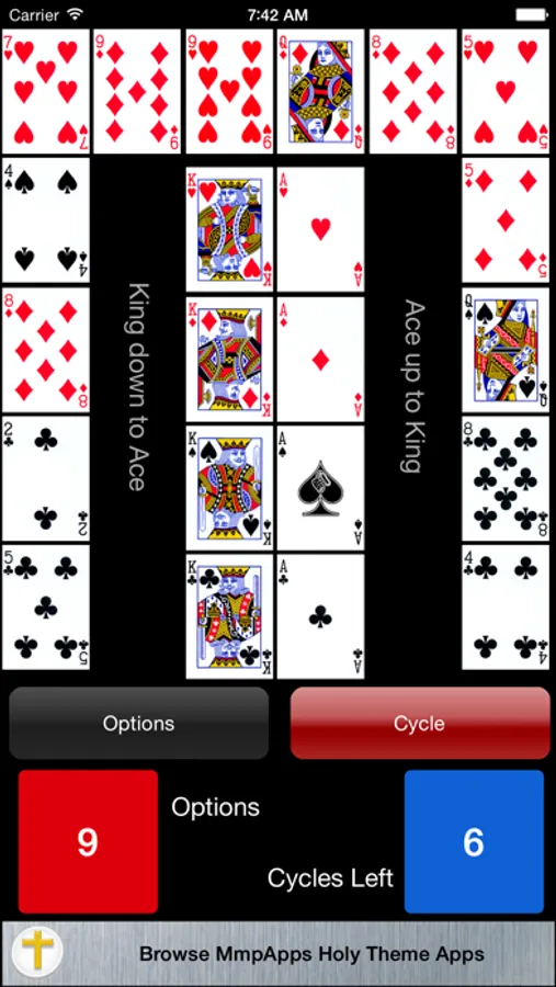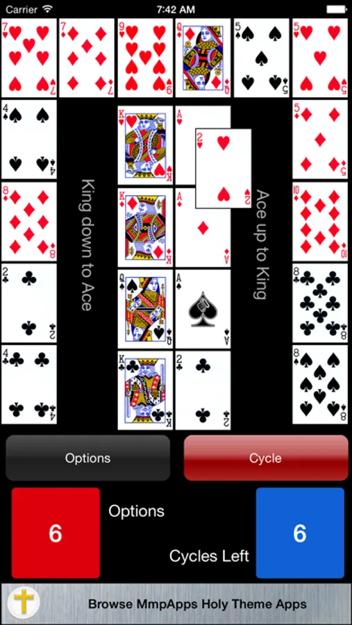 - The object is to complete the middle stacks, left side King down to Ace, right side Ace up to King.