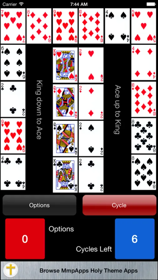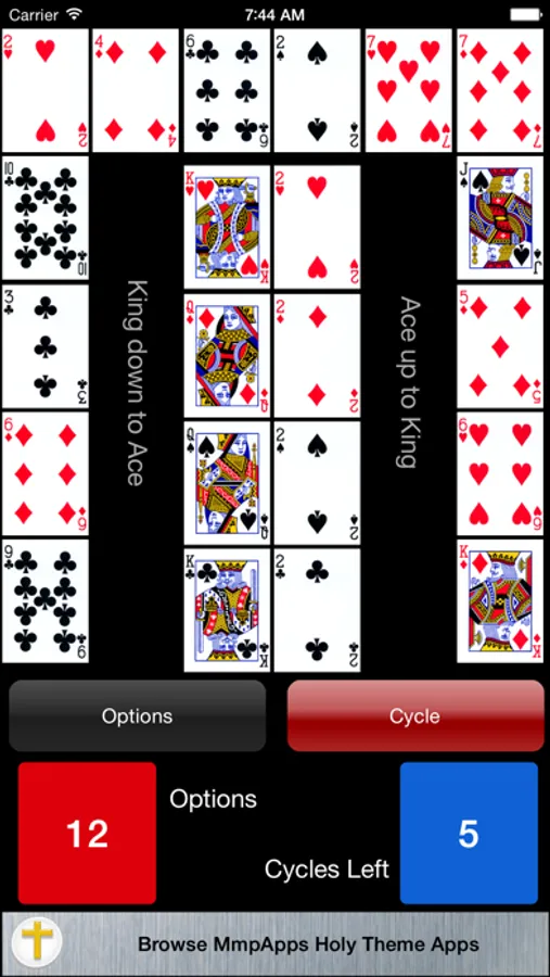 - "Cycle" will up the bottom card of each outer stack to the top.
