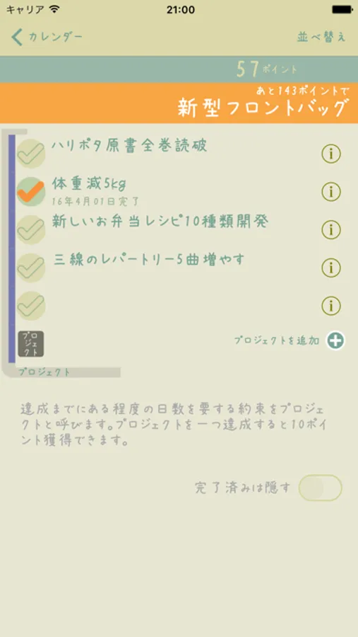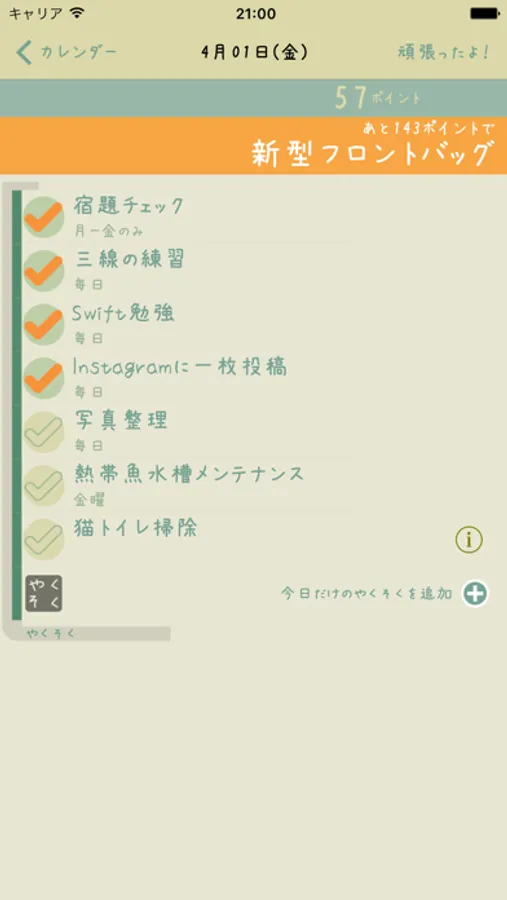チェックマークをつけるときに、どれくらい頑張ったかに応じてポイント数を変えられるようになりました。従来と同じシンプルな使い方(一律で1ポイント)もできます。