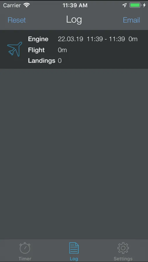 The email can be directed to your company or to yourself to see total engine time, flight time, starts, landings and fuel for the day.