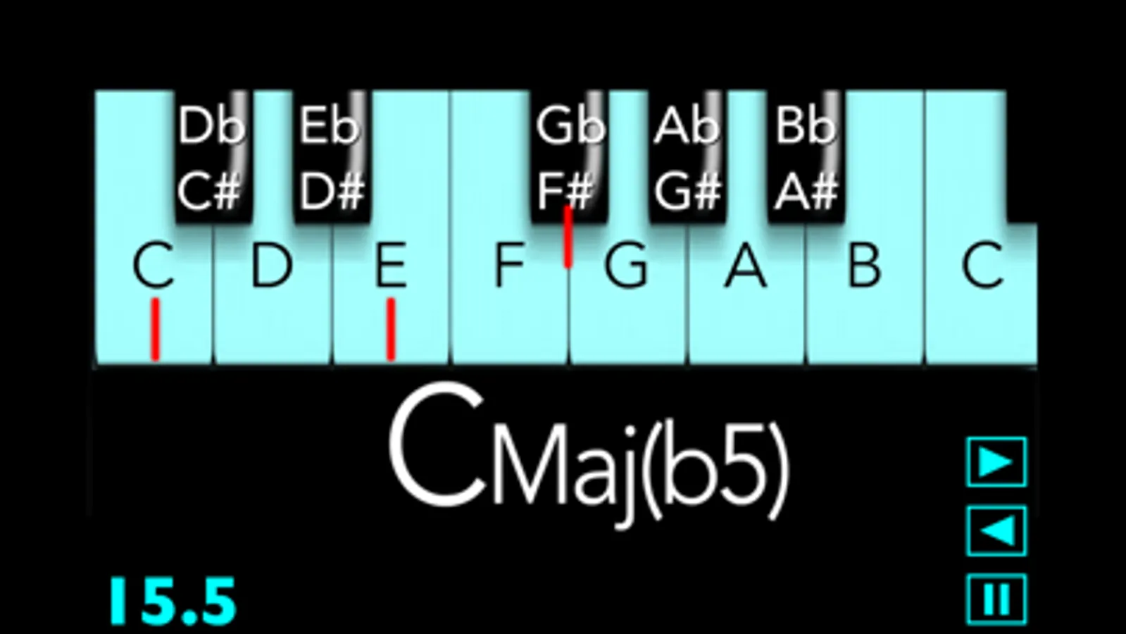 - On quizzes 11 to 15 you will listen the studied chords and you will see several choices expressed in the Anglo-Saxon music notation system. You have to click on the choice that corresponds to the chord that you heard.