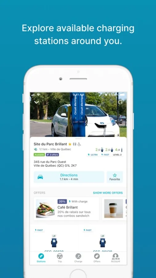 The Electric Circuit is the largest public electric vehicle (EV) charging network in Québec. The Electric Circuit mobile app gives you access to many services. For example, you can: