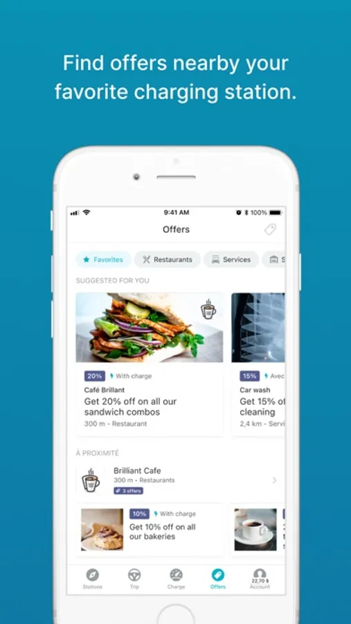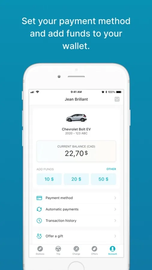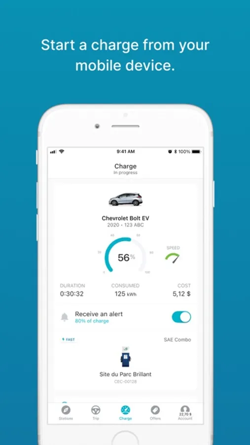 • Visualize the closest charging station on a map to check availability in real time and see the usage fee.