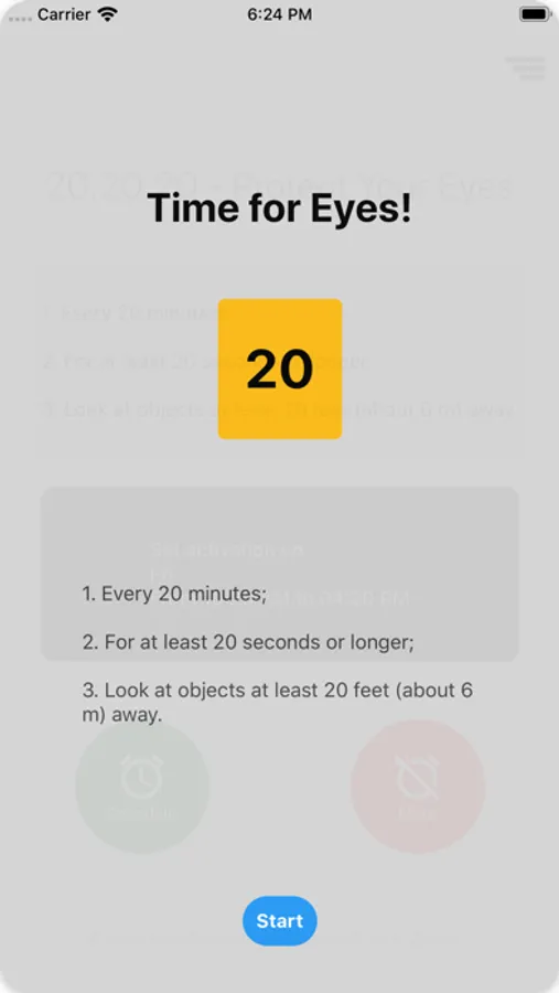 This is the first of heath care app series from AME Software Factory. If you experienced any kind of tired, redness, irritation of your eyes, please take time to take a rest for your eyes in every 20 minutes. 20.20.20 app will help you.