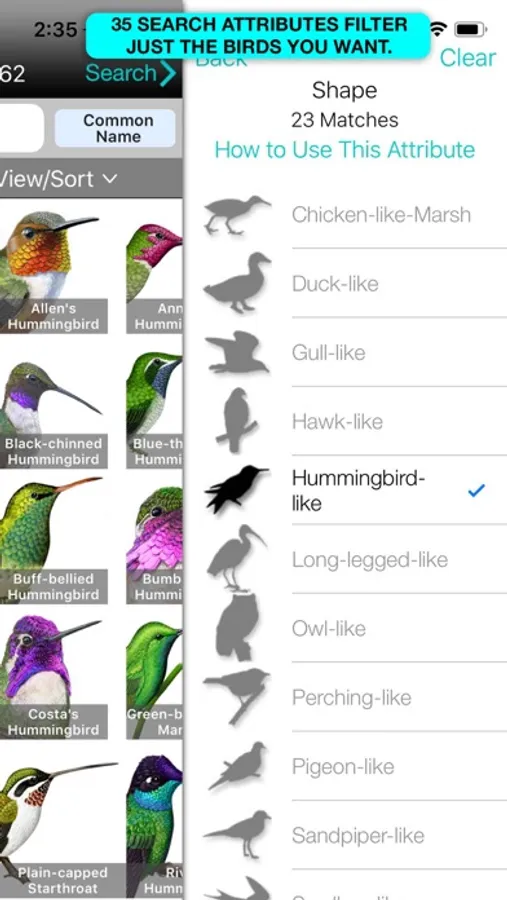 But the real magic lies in Percevia™, the only parametric birding search engine that can turn anyone into an expert birder, with over 35 characteristics that can be searched, such as body color, GPS location, habitat, bill shape, and song type. The beauty of iBird is it always gives an answer; no more “bird not found” messages.