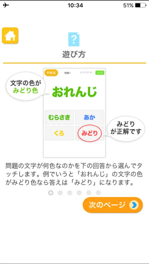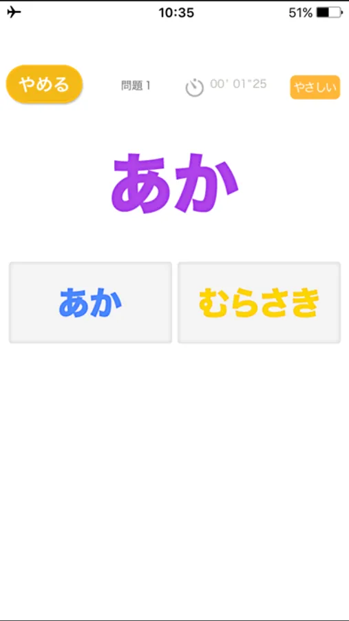 問題の文字が何色なのか、表示される色のリストから選んで答えるアプリです。