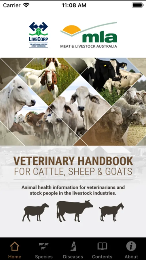 The Veterinary Handbook app has been adapted from ‘The Veterinary Handbook for the Livestock export industry’ by the Australian Livestock Export Corporation (LiveCorp) the RD&E service company for Australia’s cattle, sheep and goat exporters;and Meat & Livestock Australia (MLA) the marketing and RD&E service company for Australia’s cattle, sheep and goat producers. As a result provides a range of information that includes: