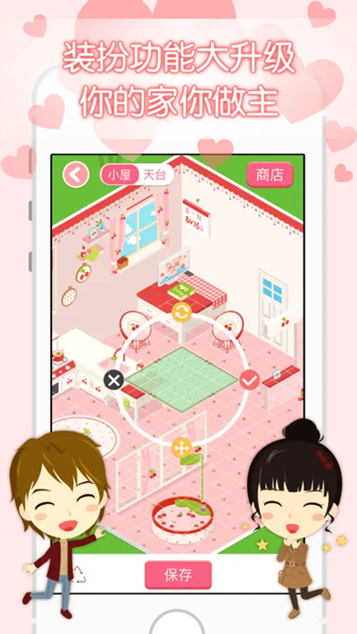 3.最全情侣功能:闹钟、日记本、纪念日、地图、天气、相册、聊天、情侣游戏。还能打扮得美美嗒,满足你的王子公主梦。