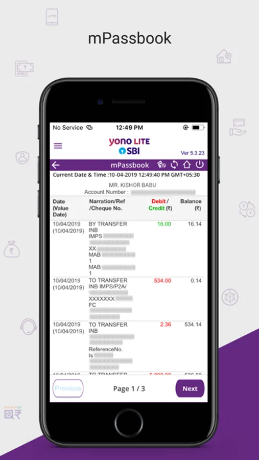 • Detailed account information (Transaction / Deposit /Loan / PPF / SSA accounts)