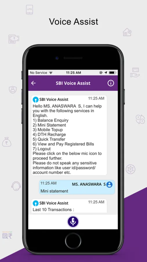 • Voice assisted functionality to know Balance, mini-statement, Mobile &