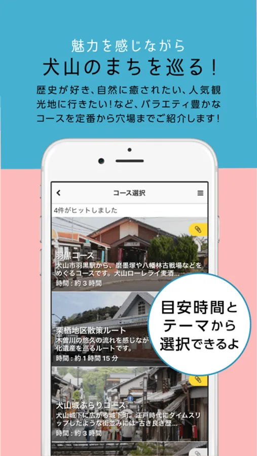 It offers a “Course” feature that suggests theme-based tour routes and a “Navi” feature that guides you to your target destinations.