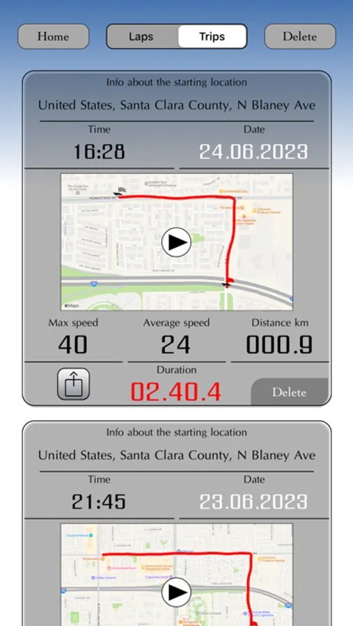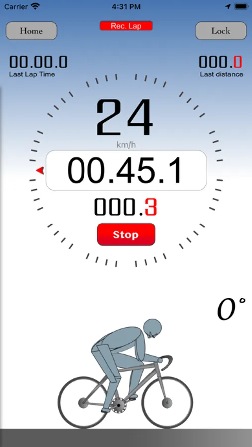 3. Stopwatch scene. This app has a very convenient stopwatch which lets you save your lap time in the results after completing the lap just by touching the screen. You will also find a convenient countdown accompanied with sound.