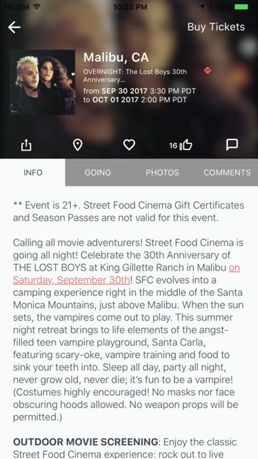 - Buy tickets, event after the event has started