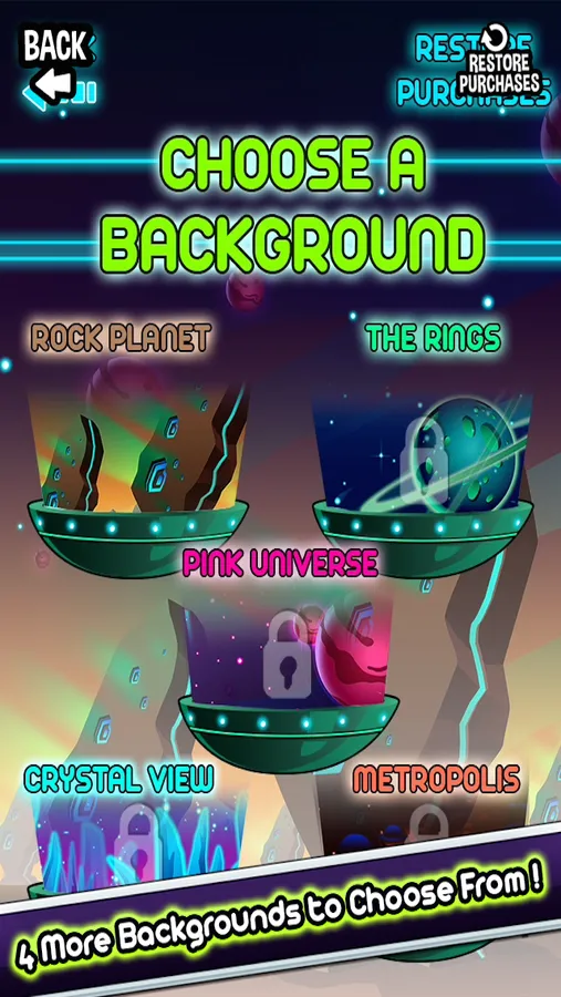 Pick from Rock Planet, The Rings, Pink Universe, Crystal View, and Metropolis!