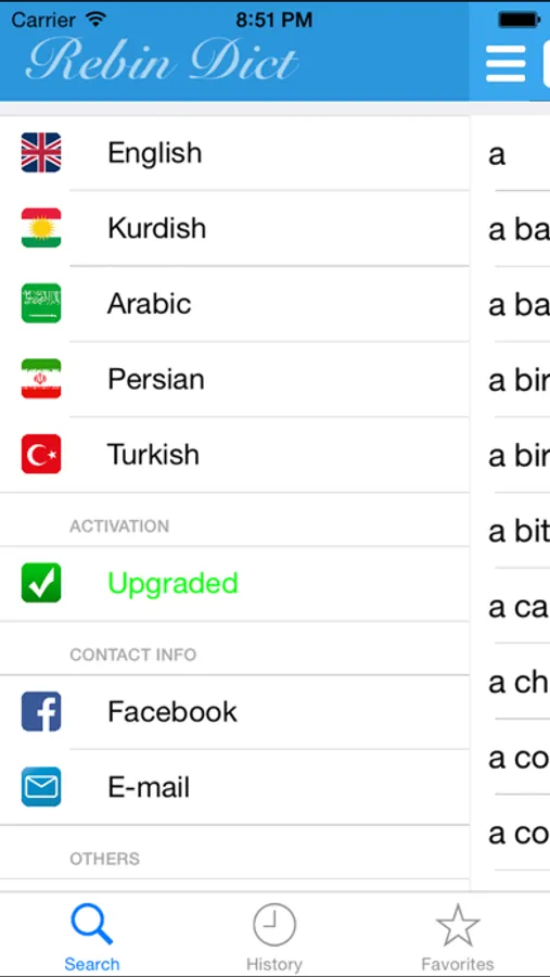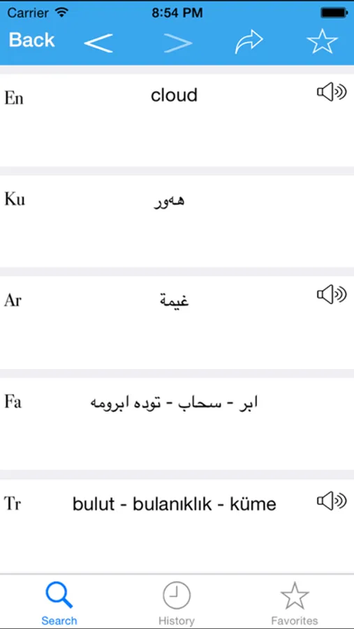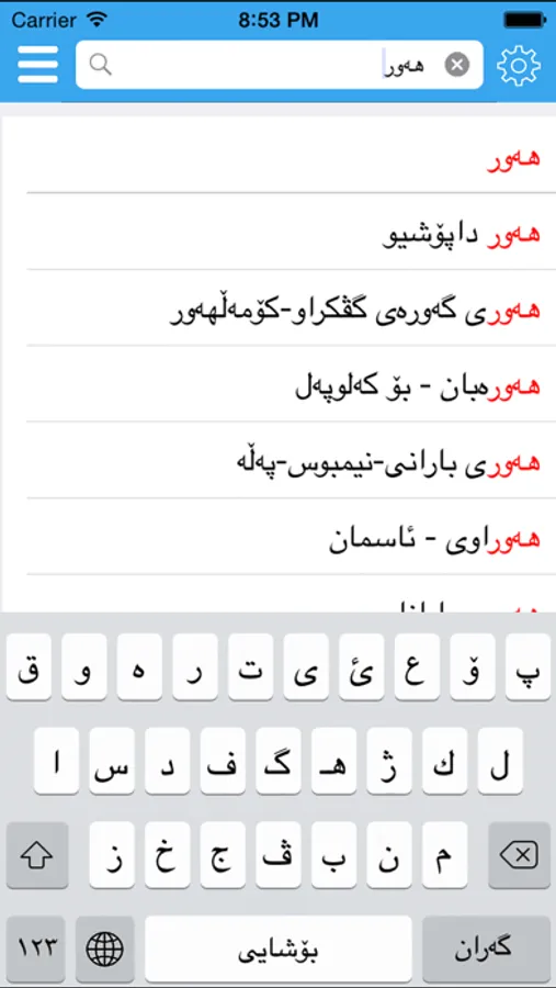 This dictionary includes more than 54,000 words with (( English-Kurdish-Arabic-Persian-Turkish )) meanings.WORKS OFFLINE - no Internet connection needed when searching words.