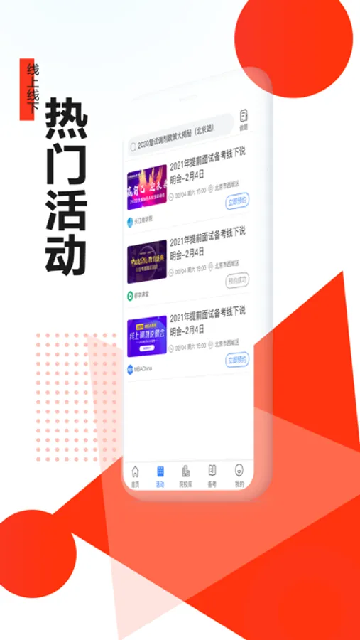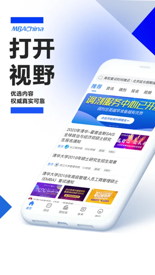 MBA中国网与全球200+各大商学院保持深度合作,抢先发布MBA与商学院政策,院校官方新闻、招生简章、宣讲会、提前面试批次、复试调剂信息、线上线下商学院活动,助你pick你的心仪院校。