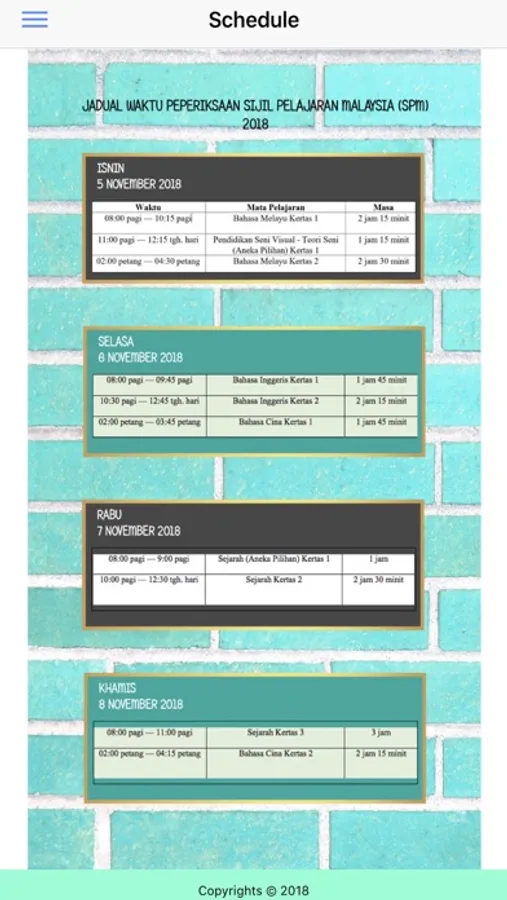 Do you have massive reference books stored in your bag before exam? SPM app is designed to manage them seamlessly with high efficiency. SPM app contains all past year exam major subjects (etc: Bahasa Melayu, Sejarah, Math, Science). Each subject has been specially compiled to help users to its utmost convenience.