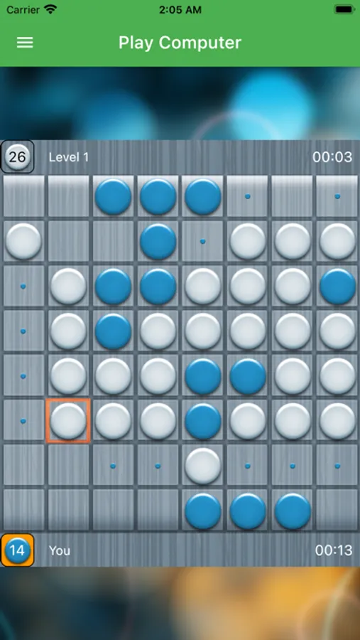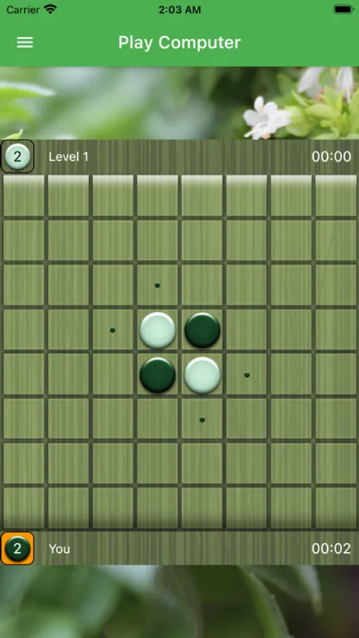 Play against AI at levels 1-5 or play online with players from all over the world. Create your game by choosing your own time controls or play online games by joining any of them. If you want, you can watch the games of other Othello players live.