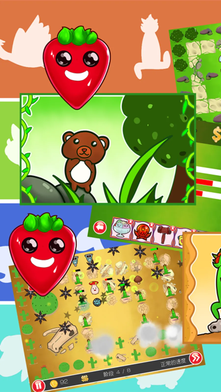Save Berry is a fast pace tower defence game. No waiting time for enemies waves and with max 8 waves to ensure each level is fast and sweet. You have to act fast to place the towers to stop the monster from reaching the Berry.