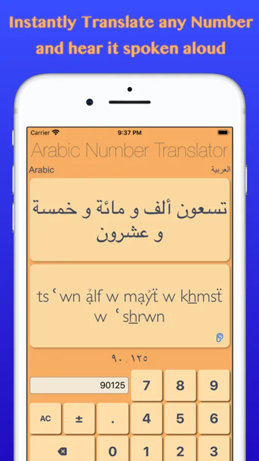 Arabic Numbers is a unique new way to learn numbers and counting in Arabic and Persian. It instantly translates numbers (as digits) into words. It has two input methods: standard calculator style and a novel way to input numbers using odometer-like wheels that make it easy to learn counting. It also features a flashcard-style practice mode to help you train yourself to quickly recognize numbers.