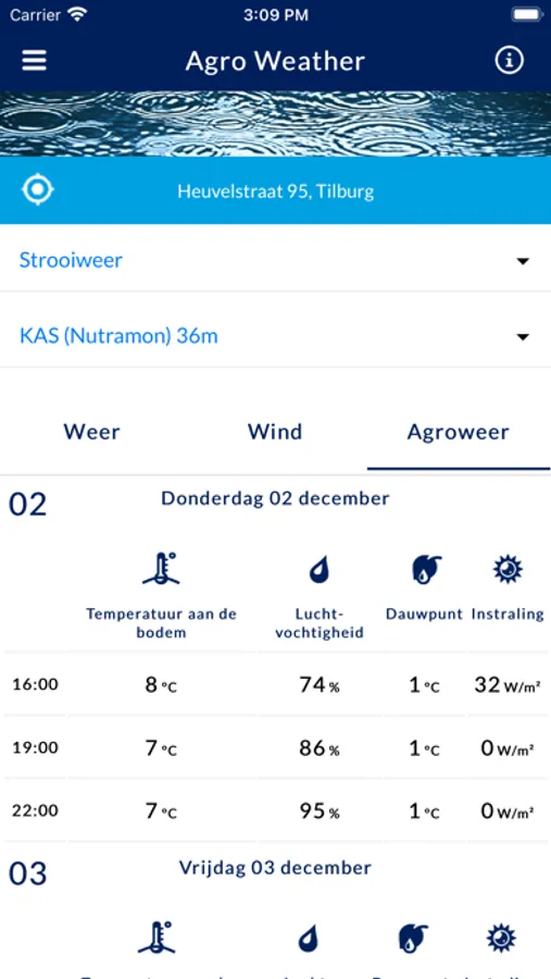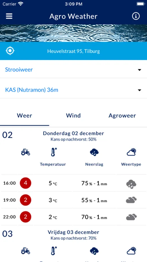 Een moderne agrariër wil slim en efficiënt werken. Daarbij heeft hij informatie nodig om te bepalen wanneer hij het land het beste kan bemesten, beregenen, spuiten, strooien of het welzijn van zijn dieren kan optimaliseren. Dat kan met de uitgebreide Agro Weather App die OCI Agro speciaal voor agrariërs heeft ontwikkeld. Deze app geeft afhankelijk van je geplande agro-activiteit het optimale moment aan om aan de slag te gaan.