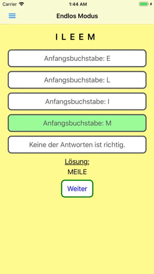 Sie müssen jetzt herausfinden welches Wort aus diesen Buchstaben gebildet werden kann und dann den richtigen Anfangsbuchstaben auswählen.