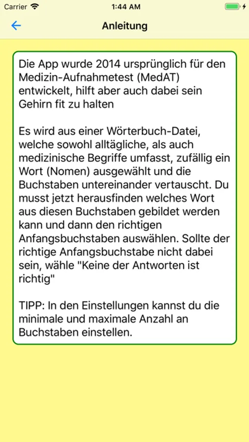 Diese App ist eine der besten Möglichkeiten um sich auf den MedAT Untertest Wortflüssigkeit vorzubereiten und damit wichtige Punkte zu sichern.