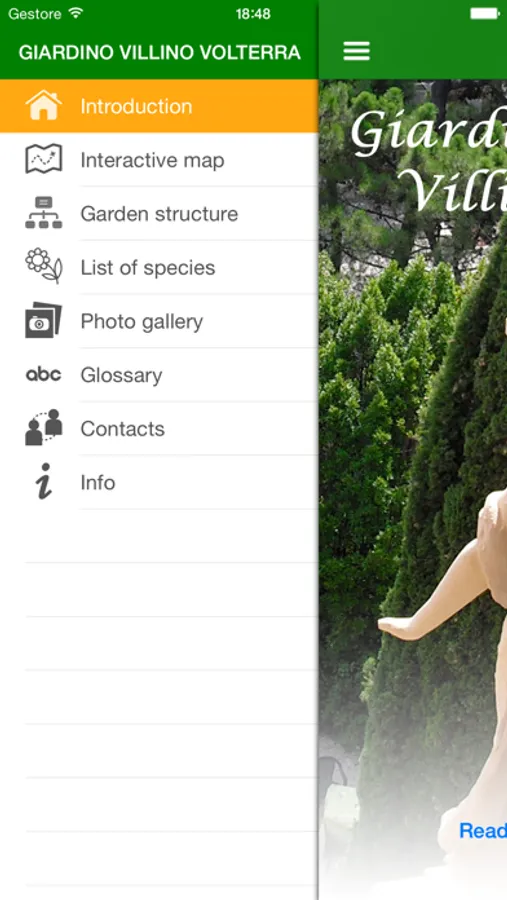 This app takes you on a tour of the 'Giardino' (Garden) which surrounds the Villino Volterra in Ariccia, near Rome, a garden created at the beginning of 20th century.