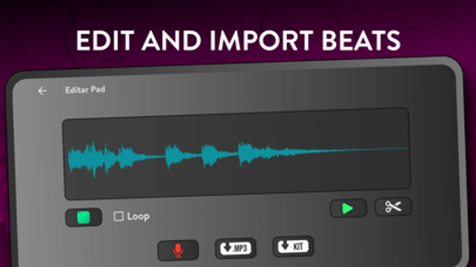 - Customize your kits: upload your sounds and record your samples