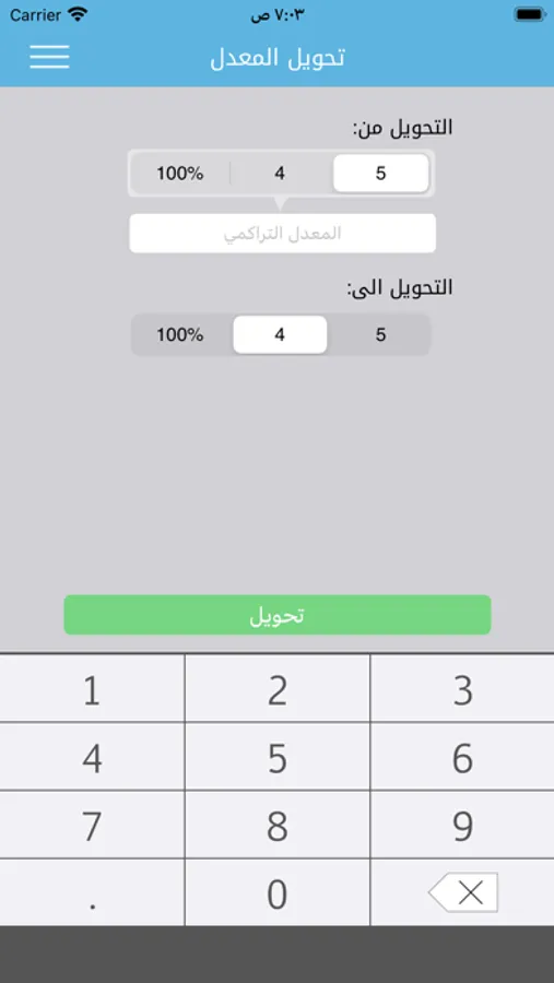 * إمكانية حساب المعدل الفصلي والتراكمي لكل من المعدلات بنظام 4 وبنظام 5 وبنظام ١٠٠.