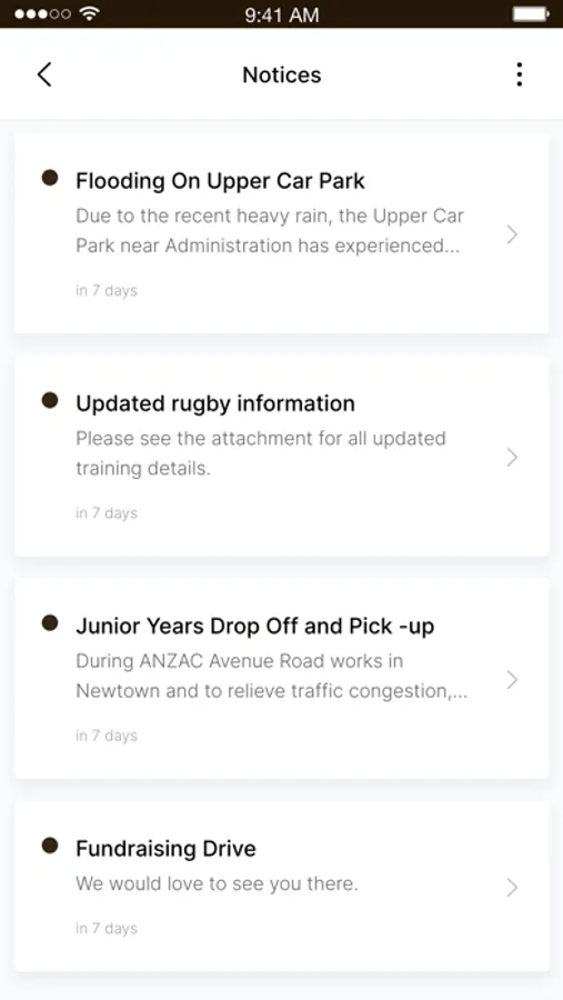 The notices section keeps you informed of important daily notices as they become available. Push Notifications will also be sent to inform you of any urgent or important information. Buses are late? The notice section will alert you.