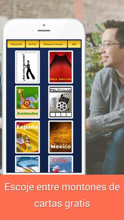 -Puedes escoger grupos de cartas para niños u otras más difíciles, con títulos de películas y personajes históricos