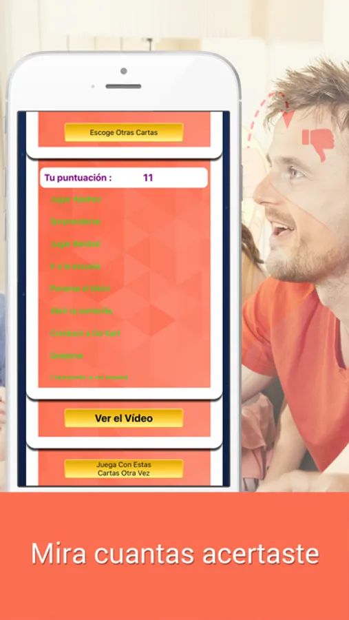 1. Levanta el dispositivo y haz que tus amigos te den pistas sobre la palabra que aparece en la pantalla.
