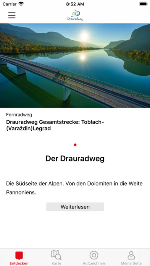 Der vom ADFC als 5-Sterne Qualitätsradweg ausgezeichnete Drauradweg beginnt in Südtirol und führt über 510km durch die Länder Österreich, Slowenien bis nach Legrad in Kroatien.
