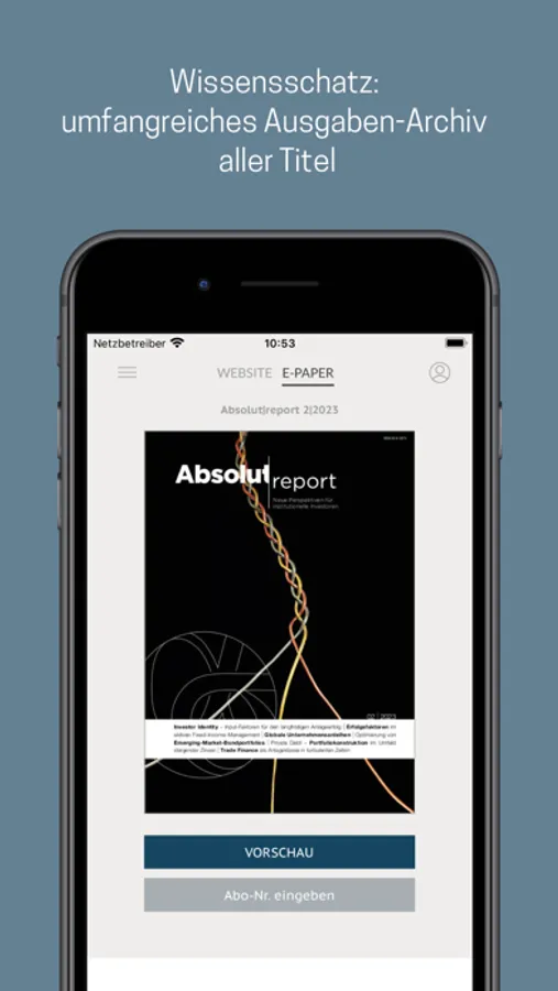 Die Absolut Research App bietet Ihnen Zugang zu allen Wissenspublikationen, die Know-how über das gesamte Anlagespektrum der institutionellen Kapitalanlage beinhalten.