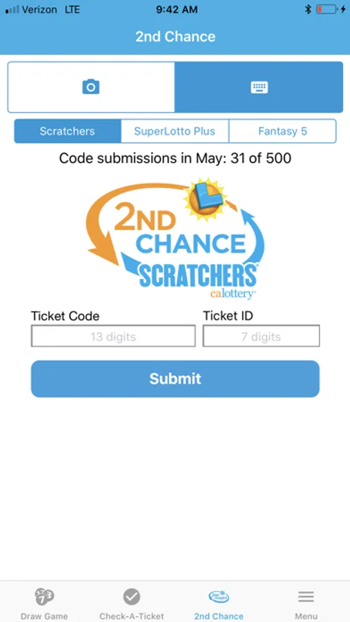 • 2nd Chance Drawings – Find special promotions, enter non-winning Scratchers, SuperLotto Plus, and Fantasy 5 tickets into bonus draws, and track your submissions.