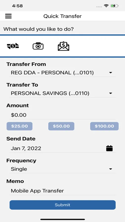 - Transfer money between accounts