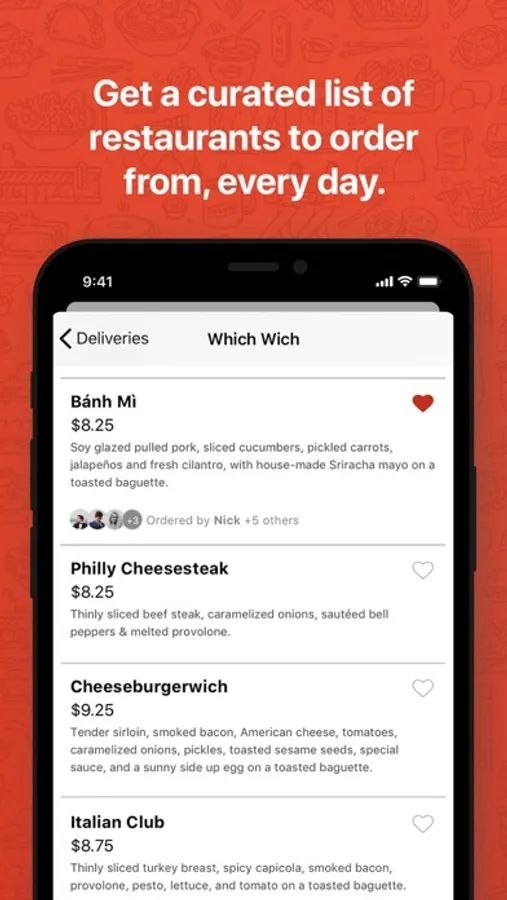 Quickly order lunch from our curated, ever-changing selection of popular restaurants. We’ll let you know when the restaurant delivers your food.