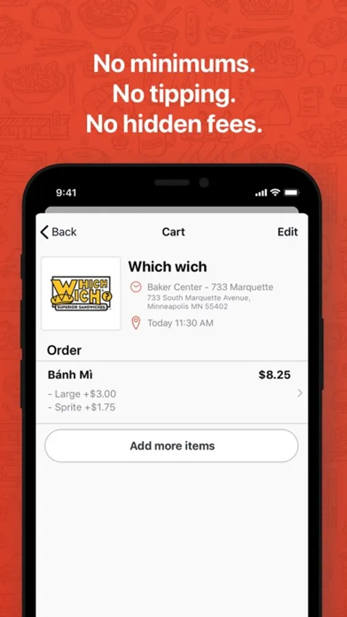 We don’t add any extra or hidden fees to your order. There are no minimums. It’s just $1.99 delivery fee or $9.99 per month for unlimited delivery.