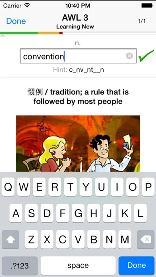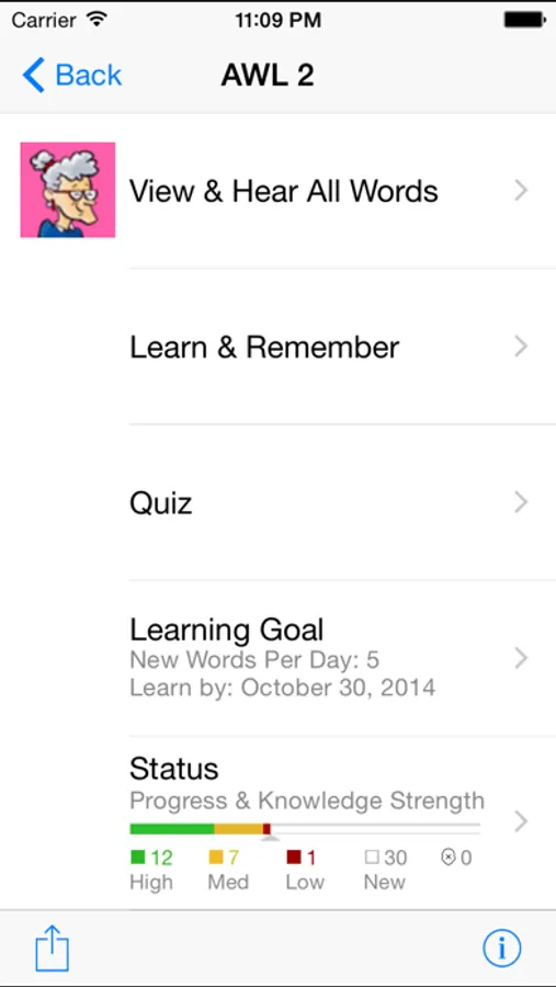 - Spaced Repetition: A scientifically proven method for optimal memory retention. The app keeps track of how well you've learned a word, and presents challenging words more frequently than others. It even suggests a time when you should drill again before you forget the words.