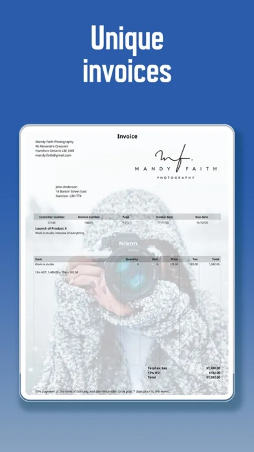 • Create unique invoices and estimates with more than 500 background images to choose from
