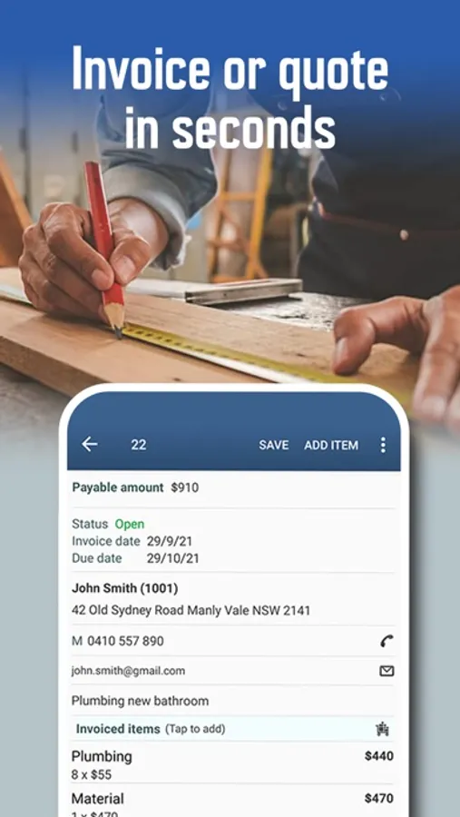 • Speed up your invoicing with quick conversion of quotes or estimates to invoices