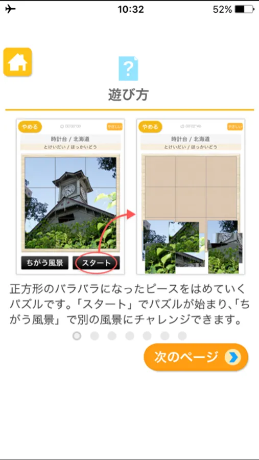 バラバラになったピースを正しい位置にはめて風景写真を完成させるアプリです。
